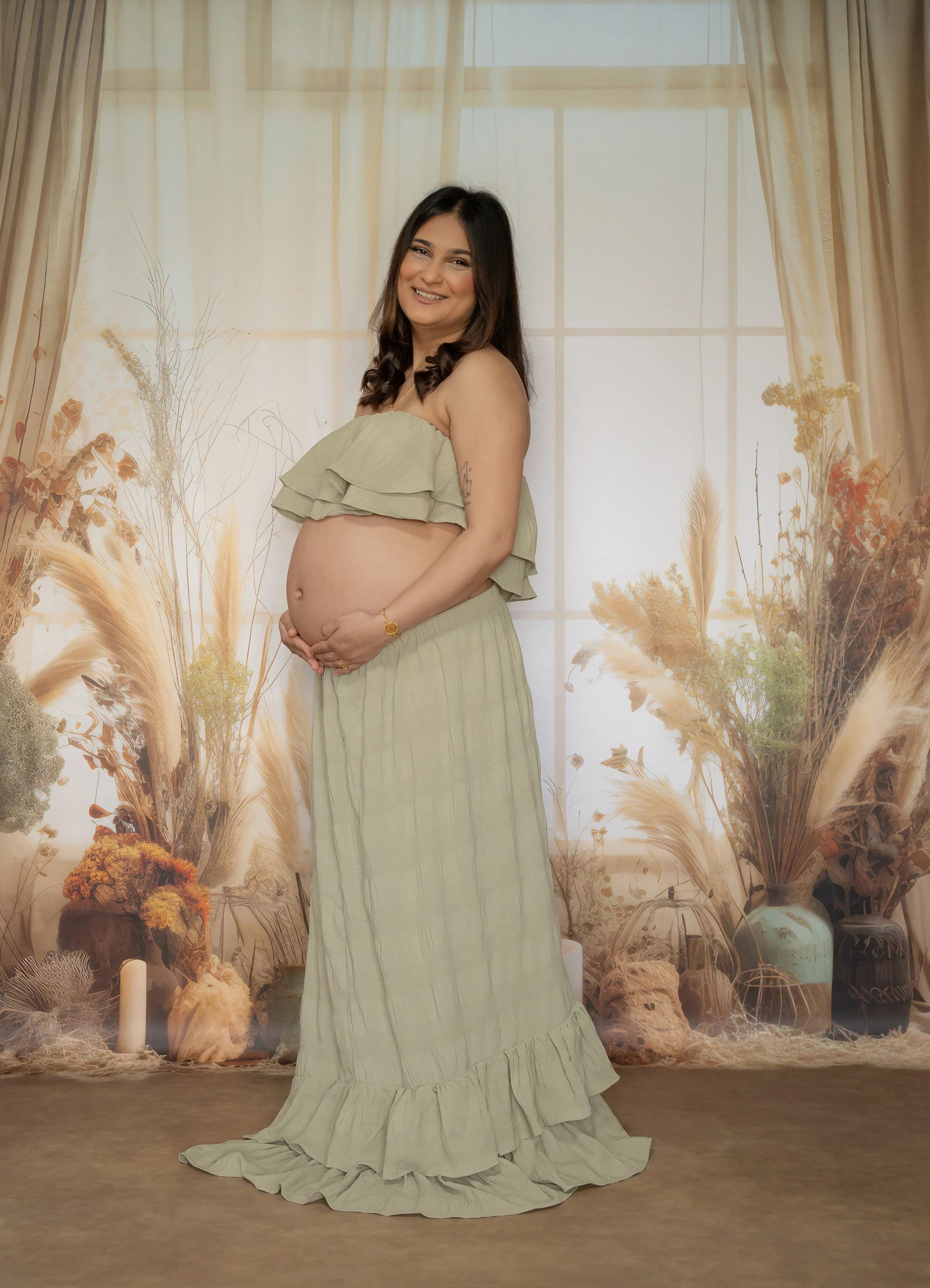 Am schönsten sind die Bilder meist gegen Ende der Schwangerschaft, wenn der Bauch schön rund ist – etwa zwischen der 32. und 36. Woche. In dieser Zeit entstehen besonders harmonische und zeitlose Aufnahmen, in denen du dich wiedererkennst.